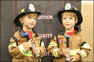 When Adrian saw the fire brigade where kids were getting dressed up his was adamant to do that. The boys were dressed in a beautiful fire brigade costume and really liked it.
