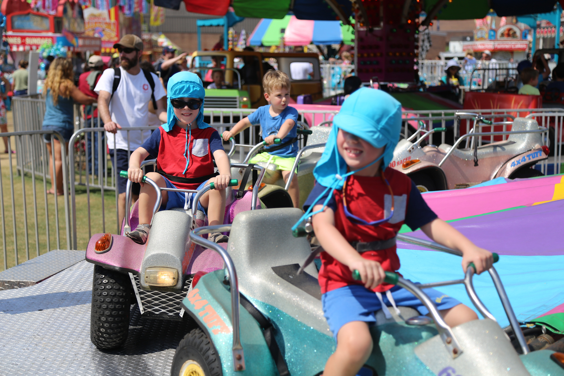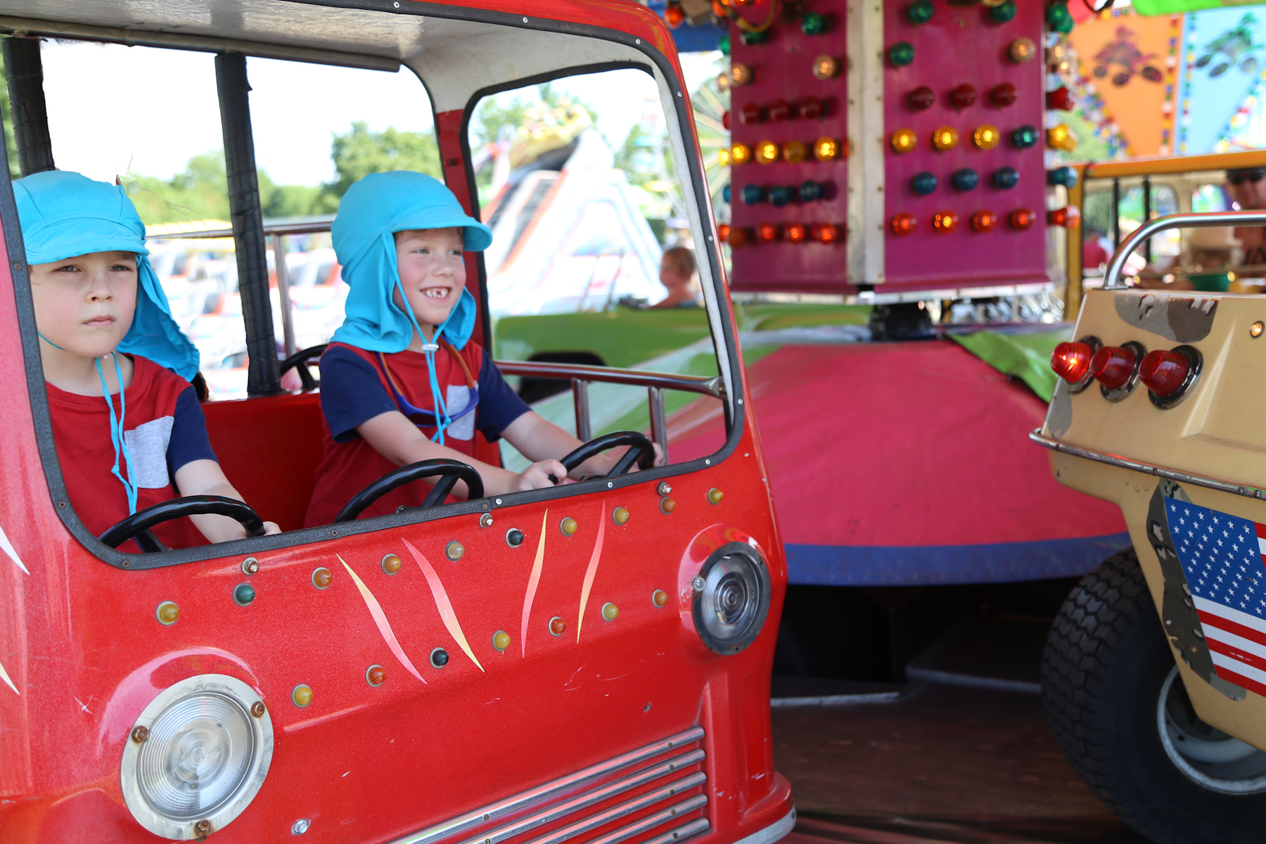 The second ride was one with various cars. The dudes chose the fire truck, of course, and they enjoyed being in front and steering.