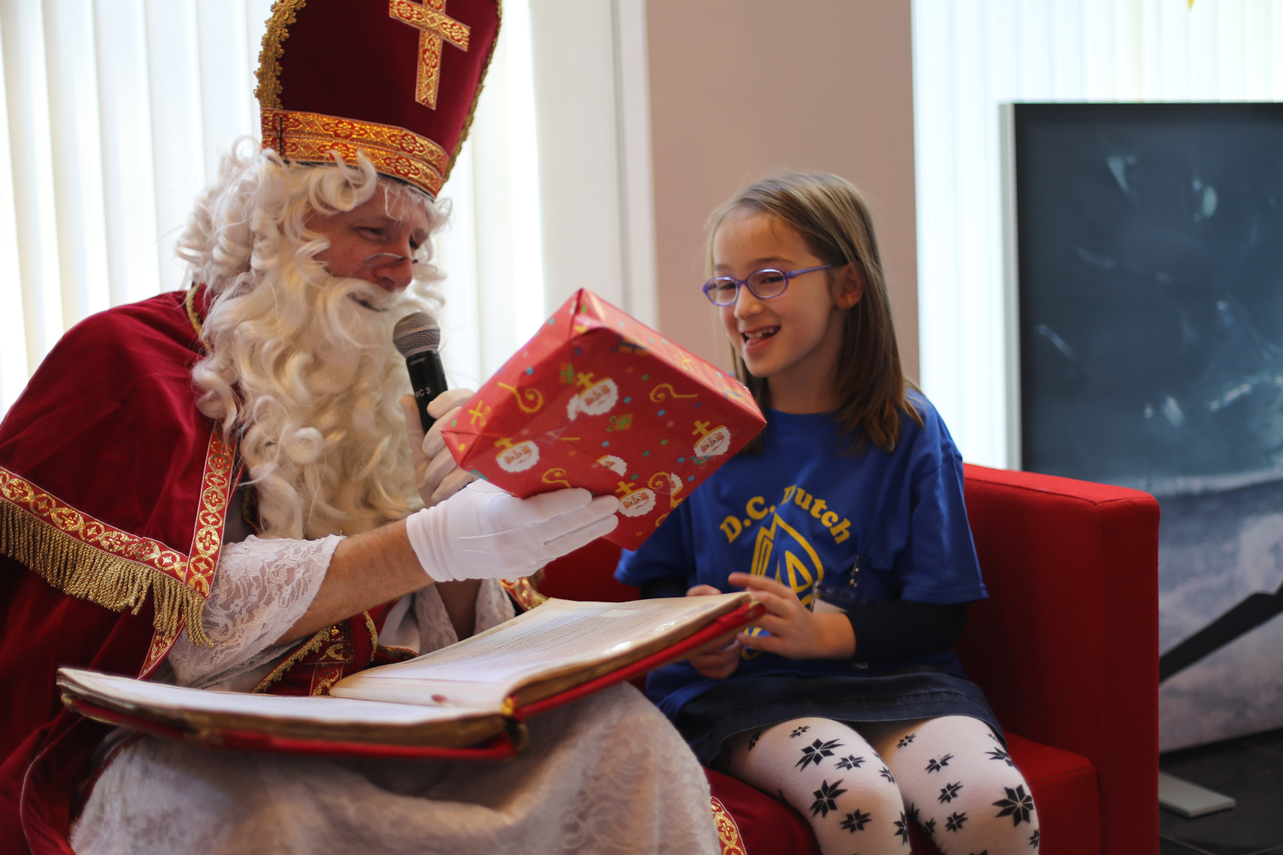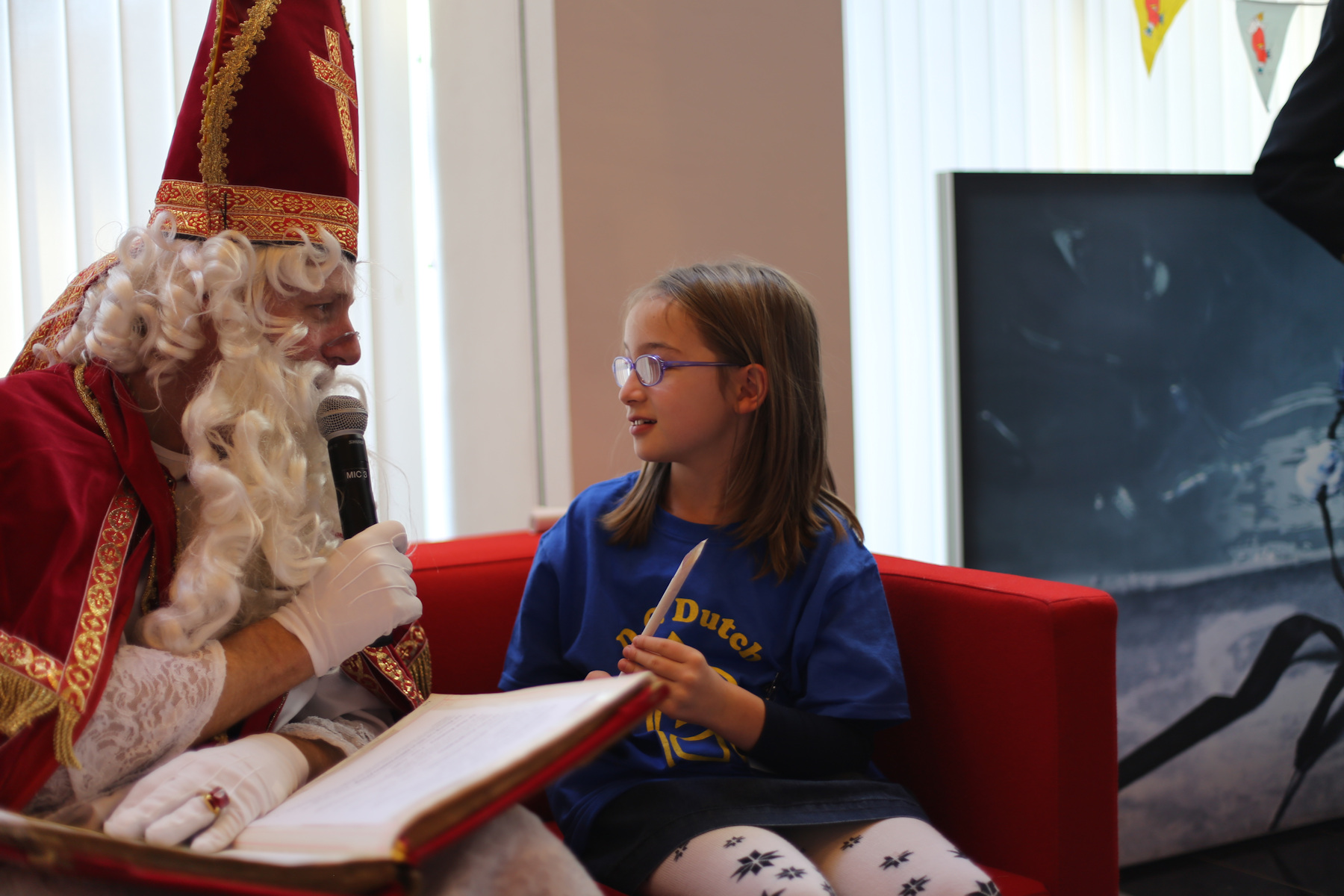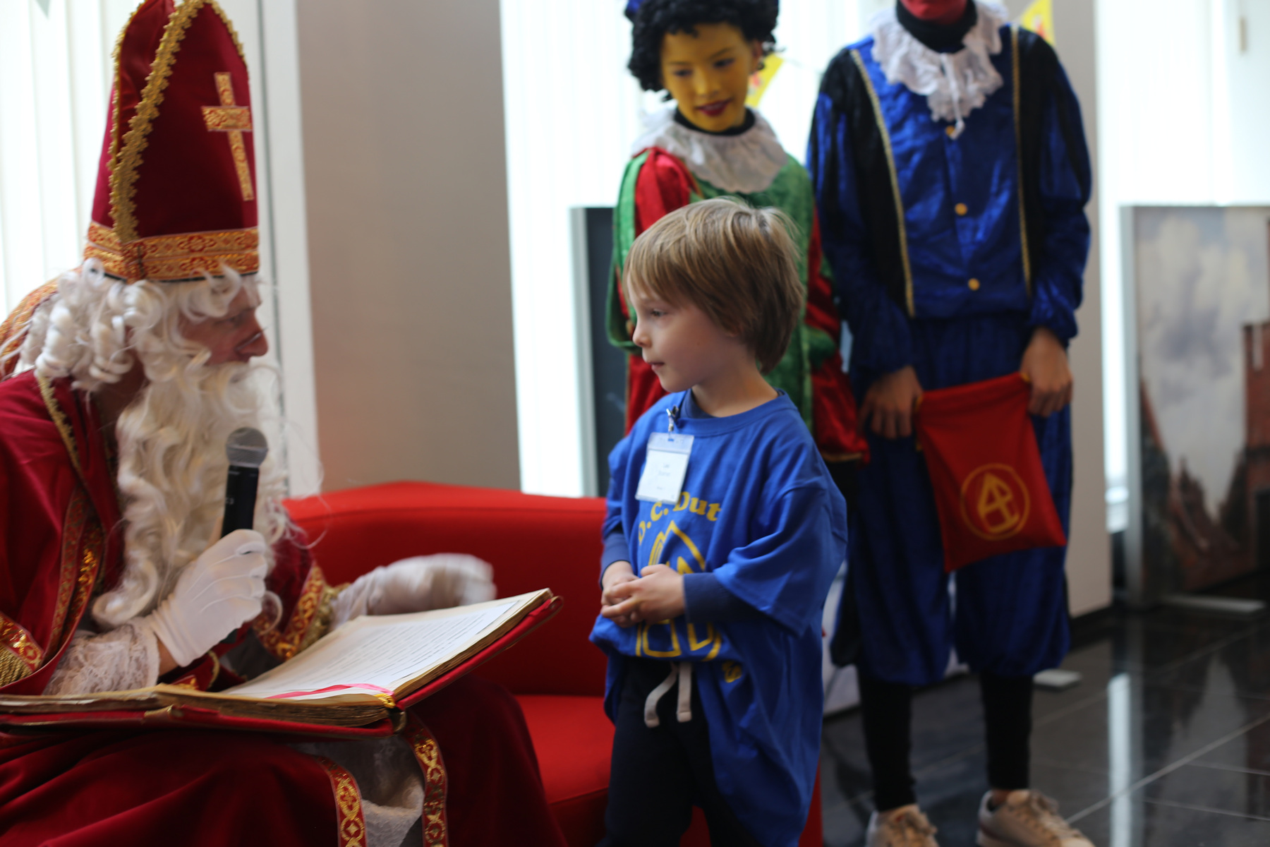 Nora had made a drawing for Sinterklaas, a mijter and they had a short conversation. She is never shy.