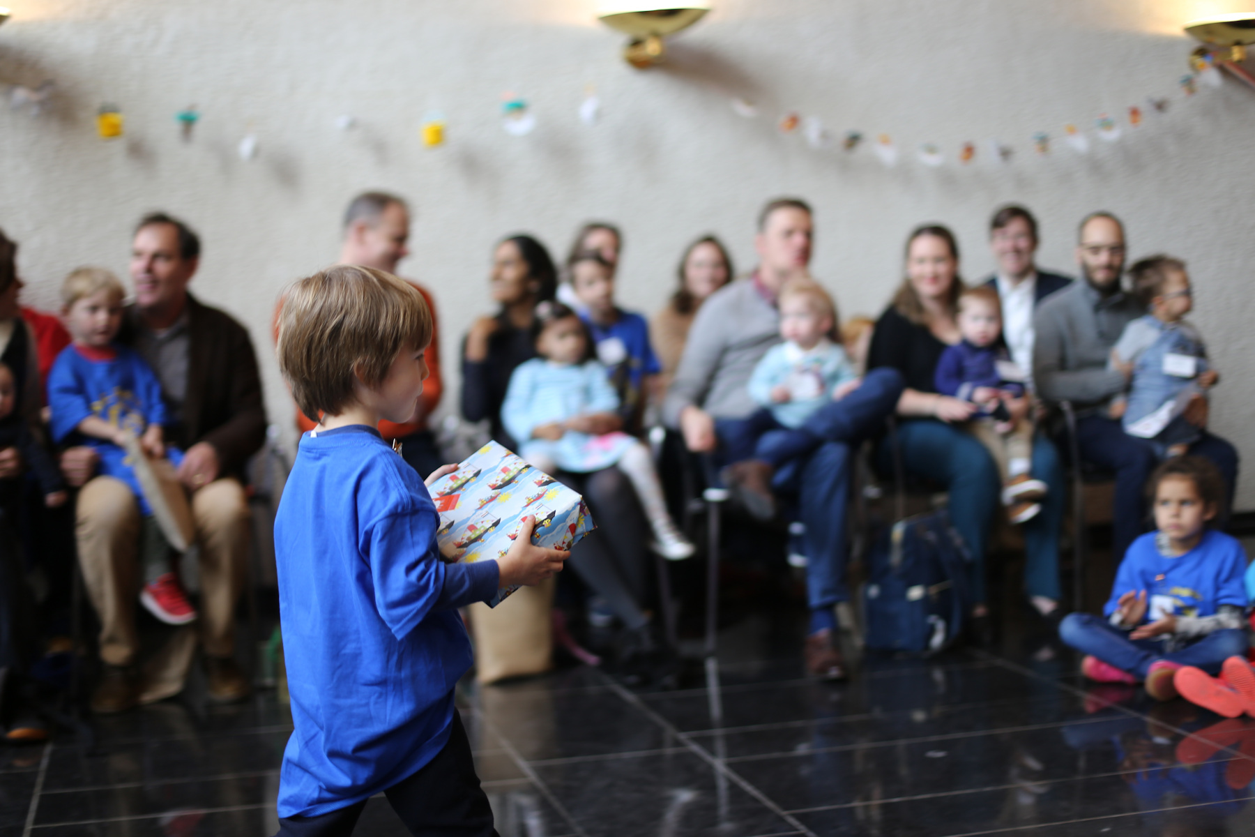 Adrian had big plans to talk with Sinterklaas -- "ik zal hem vragen hoe hij op het dak komt en het paard" and he was going to sing a song. But once he was invited to come over, he was quiet and subdued, the sweet heart. Leo was shy also and when he was done the whole room cheered him on, so nice.