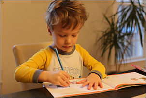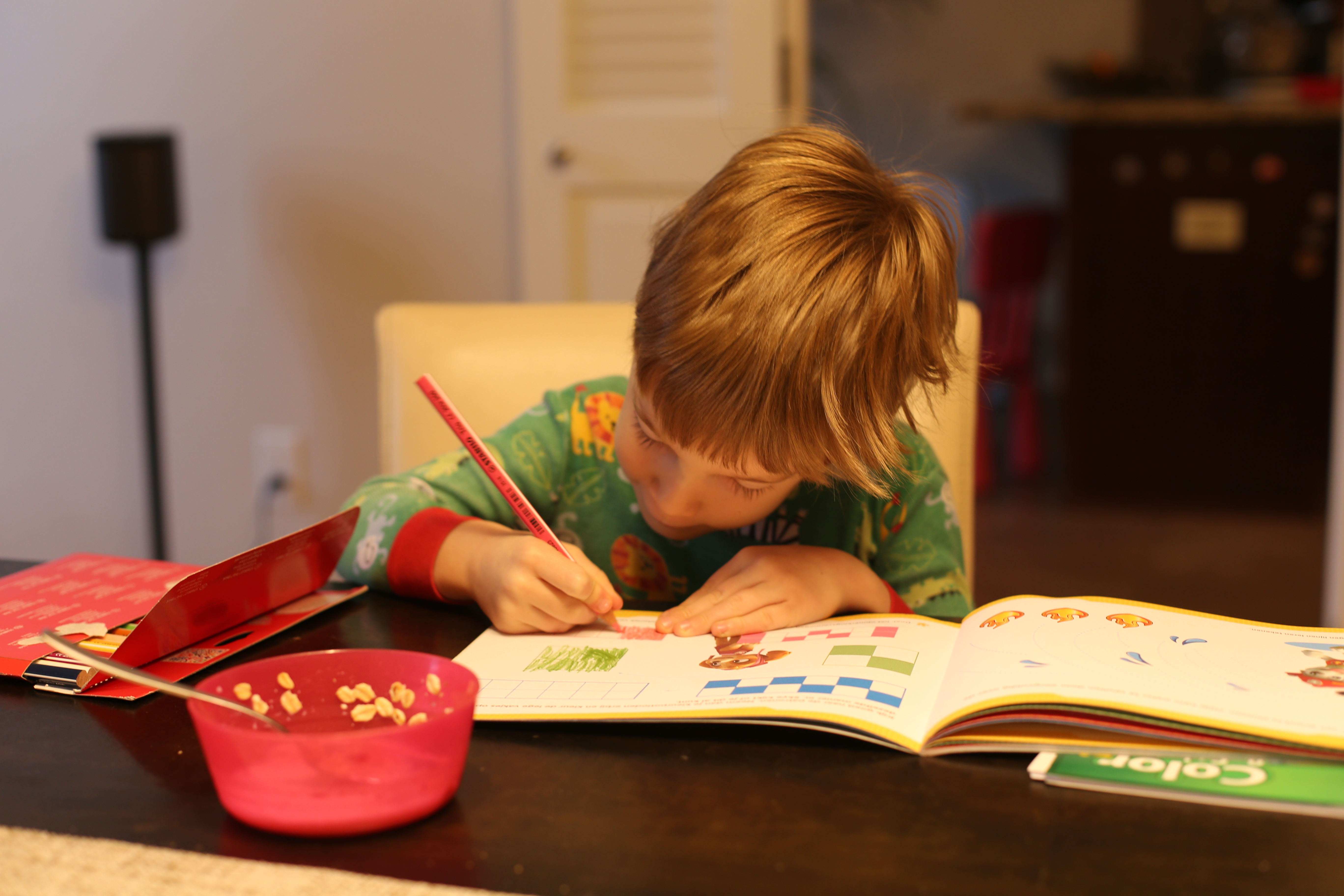 The boys were downstairs at 7.30 am, and they are doing Paw Patrol "werkjes" over breakfast. They really enjoy it.